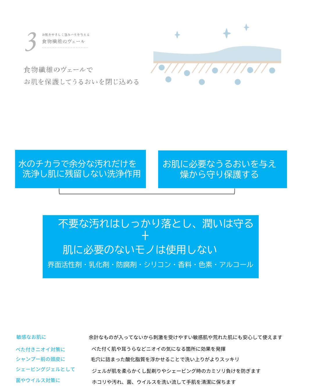 界面活性剤、防腐剤、乳化剤、香料、シリコン、パラベン、アルコール、オールフリーのミガキュスイをジェル化した洗顔です。 ベタつきやくすみ、臭いの原因である過酸化脂質を優しくしっかり浮かします。